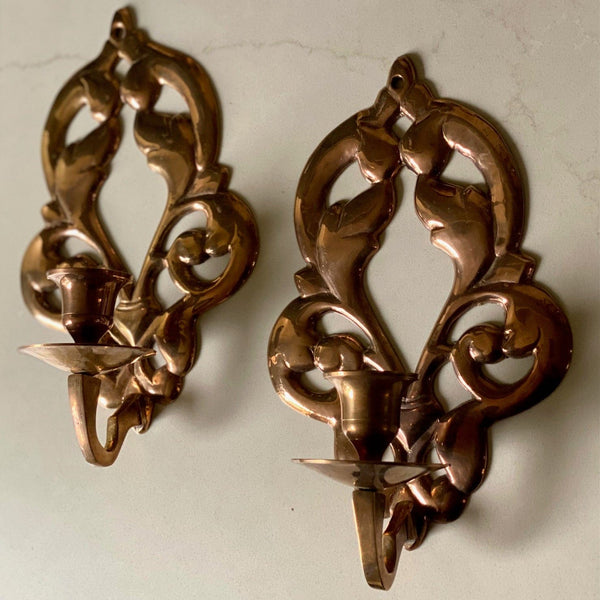 Pair of floral brass wall sconces