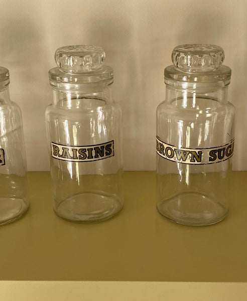 rice, sugar, raisins and brown sugar labels, with sealed lids, 21cm high